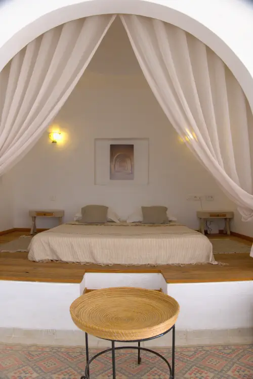 Un cocon de douceur : Une literie moelleuse, des matières naturelles et une atmosphère feutrée pour des nuits paisibles et réparatrices.